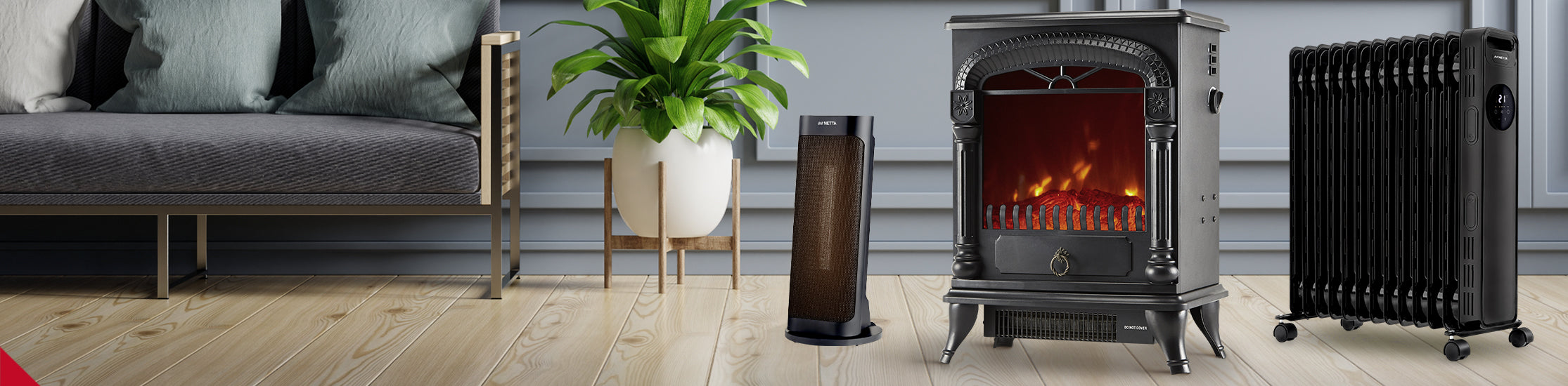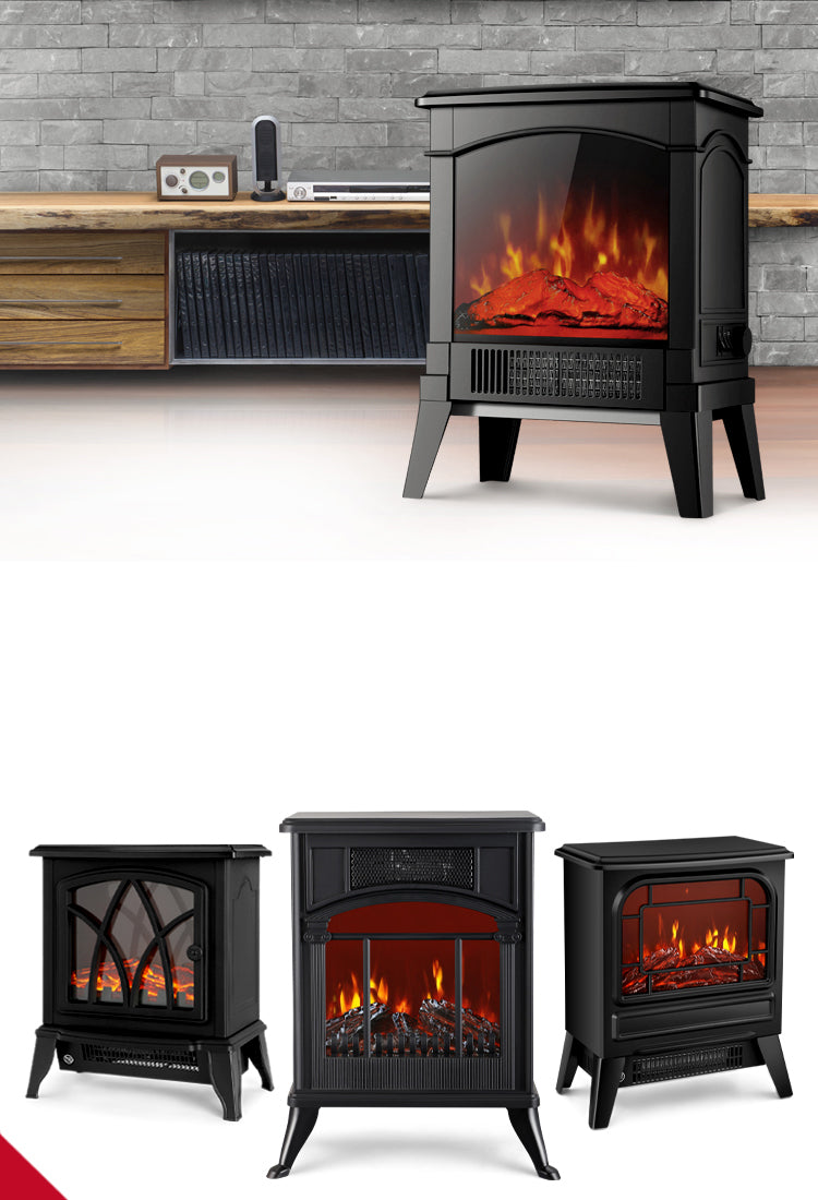 NETTA Stove Heater Electric Fireplace With Fire Flame Effect Safety Tip Over Switch