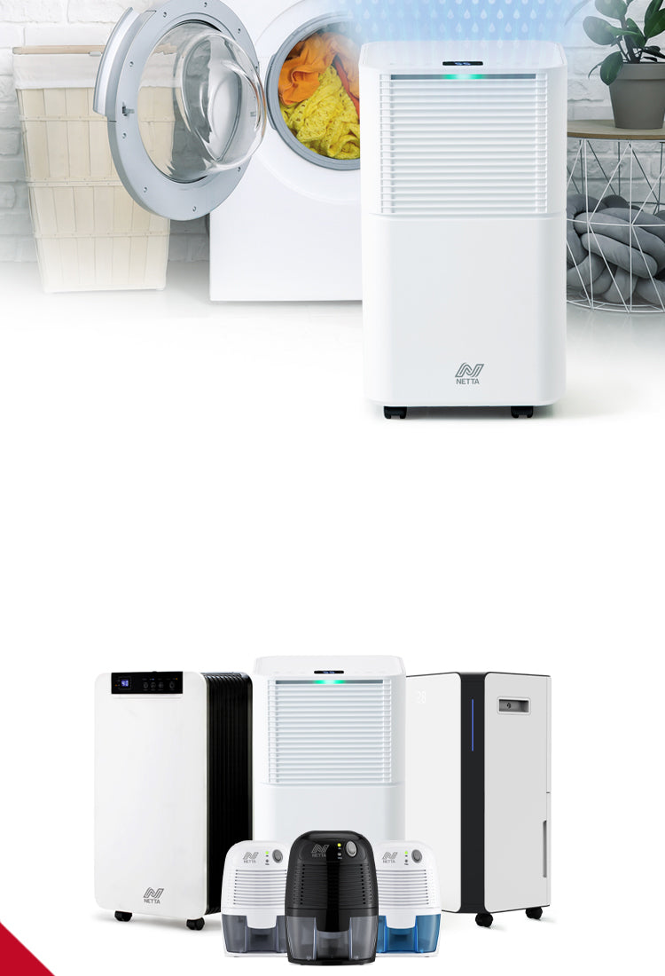 NETTA Dehumidifier 12L Day - Low noise, Air Filter, Continuous Drainage