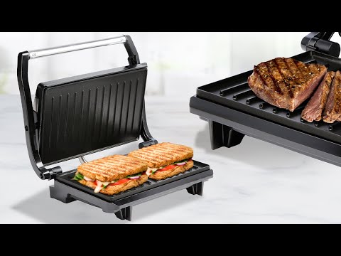 Featuring a sleek black and silver finish, this panini maker effortlessly complements any kitchen décor. The ridged grilling surface not only enhances its contemporary look but also helps drain excess fats for a healthier cooking experience.