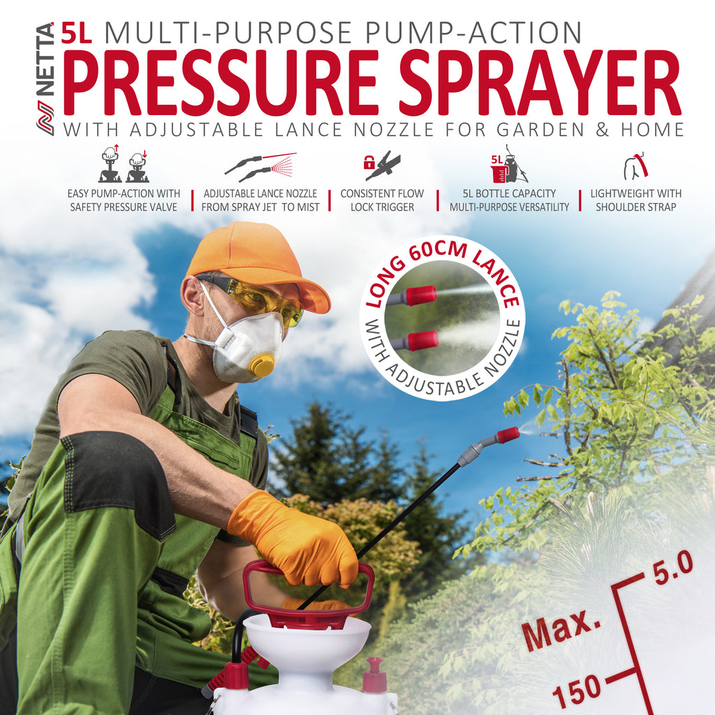 Easily switch from fine mist to strong spray with the fully adjustable nozzle, perfect for targeted or wide-area application. Ideal for gardening, cleaning, and pest control tasks.