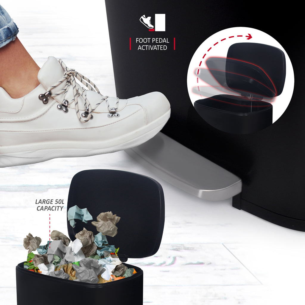 TOUCH-FREE HYGIENE: Eliminate odours and stop germs in their tracks with hygienic, hands-free operation, no mess, no fuss. Simply step up and dispose; no need to touch the lid, making it perfect for keeping your home clean, safe, and germ-free.