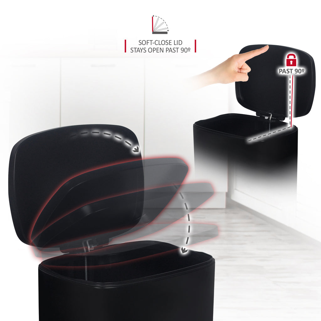 SMART DESIGN: Built with a non-slip base, whisper-quiet soft-close lid, and a removable inner bucket with a bag tuck design to keep liners hidden and secure.