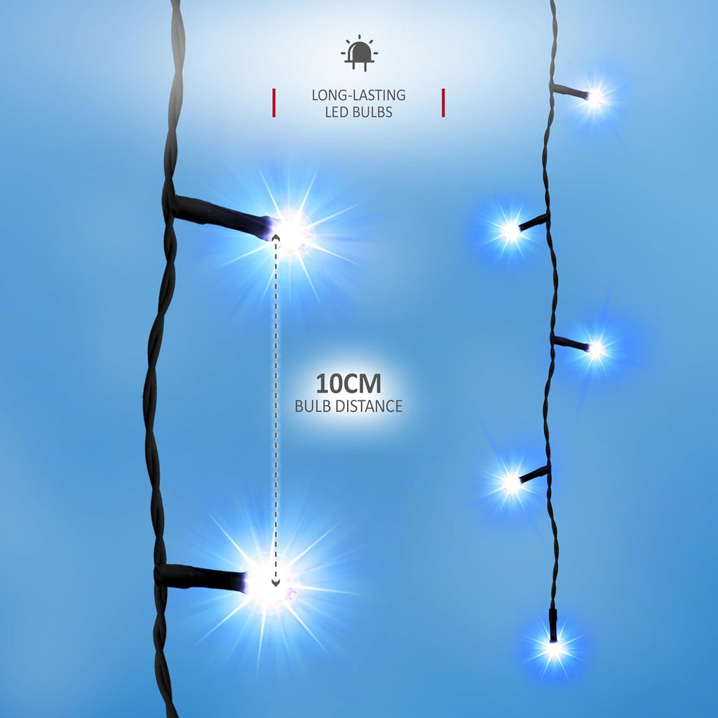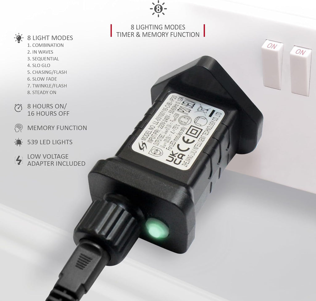 - 8 LIGHTING MODES WITH AUTO TIMER: Personalise your lighting experience with 8 dynamic light functions, including Combination, Steady On, Slow Fade, In Waves, Slow Glow, Chasing/Flash, Sequential, and Twinkle/Flash. The built-in timer allows for 8 hours of illumination followed by 16 hours off, repeating daily. Set it once and enjoy a worry-free, automated lighting display that adapts to your schedule.