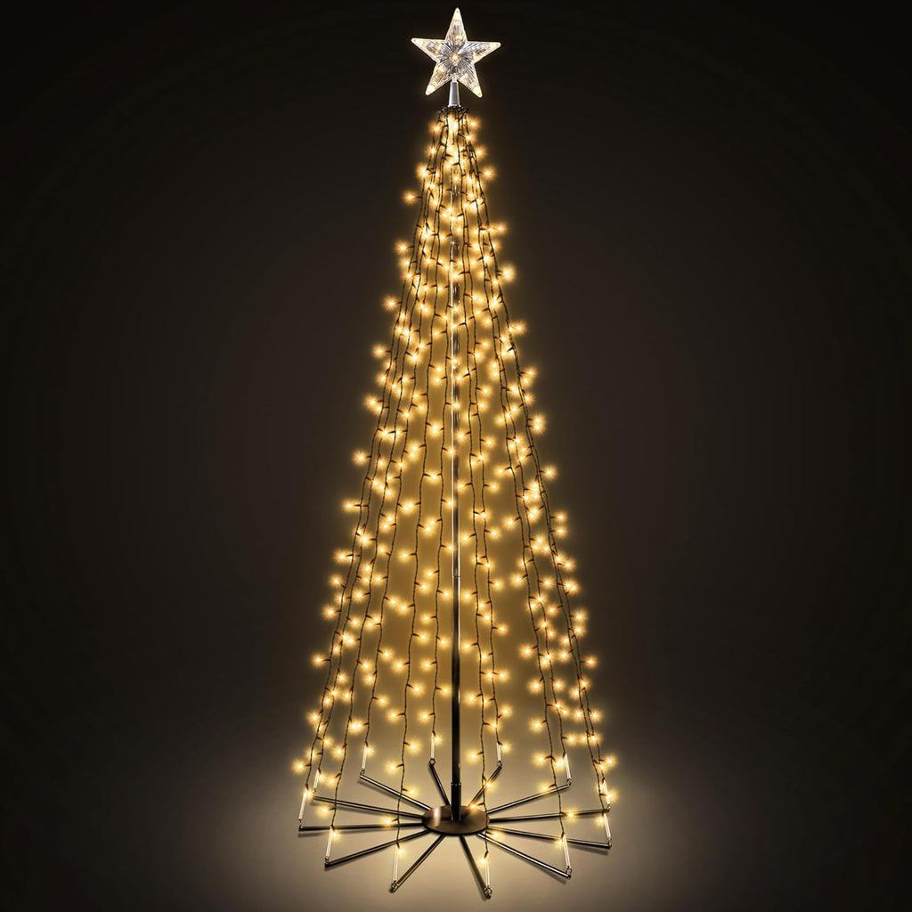 - DAZZLING LED TREE WITH STAR TOPPER: Transform your space with this stunning LED tree decoration, featuring illuminated strands, each with bright LEDs, and a star topper with additional LEDs for a magical finishing touch. Whether you're decorating for the holidays, a special event, or simply adding ambience to your garden or living room, this eye-catching design brings elegance and sparkle to any setting.